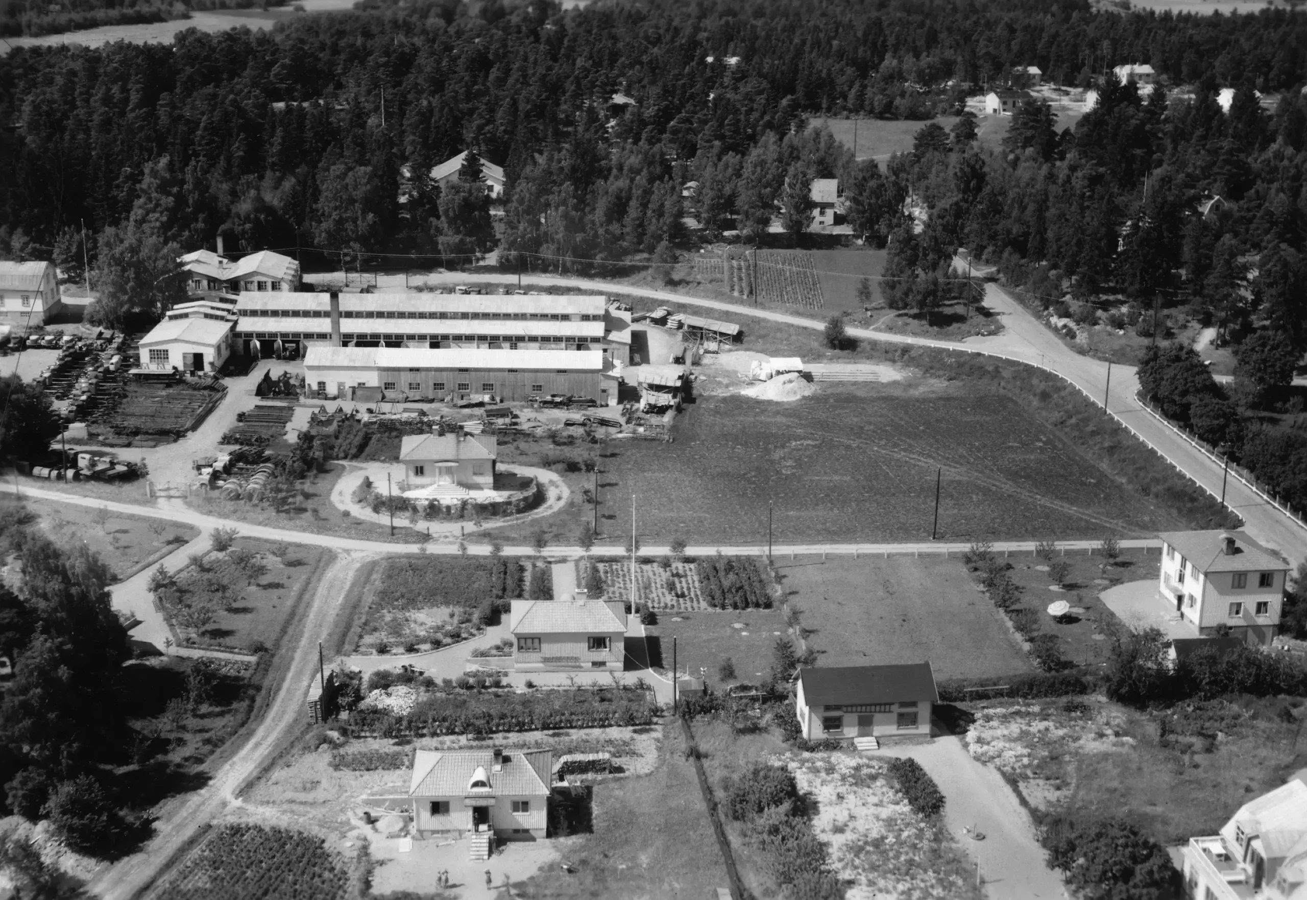 Längst upp till vänster i bilden ser du lastbilarna på Sörlings gård. Det är glest mellan bostäderna i centrala Märsta.